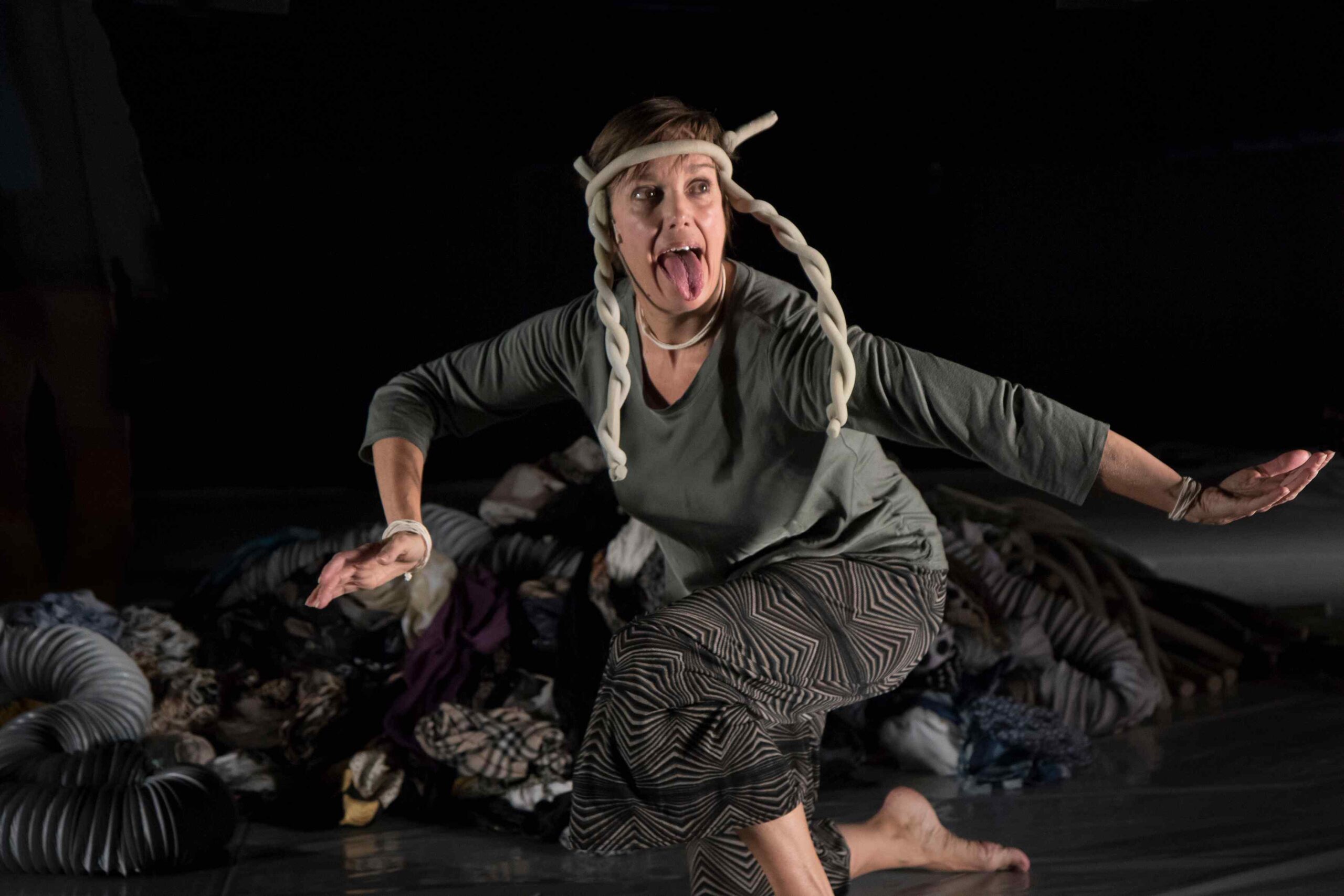 Lieu nécessaire à la métamorphose : Cocon !, c’est l’abri d’une promesse, l’expérience du devenir autre, le lieu d’incubation de tous les possibles. Une célébration de la transformation et du lien. Les œuvres et la vie de Judith Scott, artiste d’art brut devenue célèbre, sont à l’origine de la réflexion autour de Cocon ! Au centre, la question de l’abandon et du rejet des minorités, des êtres « inappropriés » tels que l’était Judith Scott, trisomique, sourde et muette, longuement éloignée de sa soeur jumelle dès l’âge de sept ans. Cocon ! se présente comme un laboratoire de recherche sur ce que génère l’histoire de Judith Scott. Le projet s’inspire également d’auteurs comme David Abram, Anna Tsing et surtout Donna Haraway. Son ouvrage Staying with the trouble guide en effet dans une large mesure cette création collective. Certains de ses personnages métaphoriques viennent porter sur scène, à travers leurs « êtres », des concepts chers à la philosophe écoféministe. Abolissant toute primauté hiérarchique, Donna Haraway prône un univers de multiples règnes où nous avons à apprendre des animaux et autres êtres vivants. Nous sommes invités à naviguer (et à nous laisser déstabiliser) dans ce système ouvert où penseurs, artistes et figures en tous genres nous soumettent des modes de « vivre ensemble ». L’objectif ? Apprendre à « habiter le trouble » pour traduire la pensée par des actes, créer des liens et éviter de nous laisser tyranniser par la réalité ou plutôt une certaine réalité, qui nous place dans la tristesse et l’impuissance. Foisonnant et grouillant d’associations diverses mêlant profondeur, poésie, et humour, Cocon ! désire nous sortir de toute inertie ambiante.