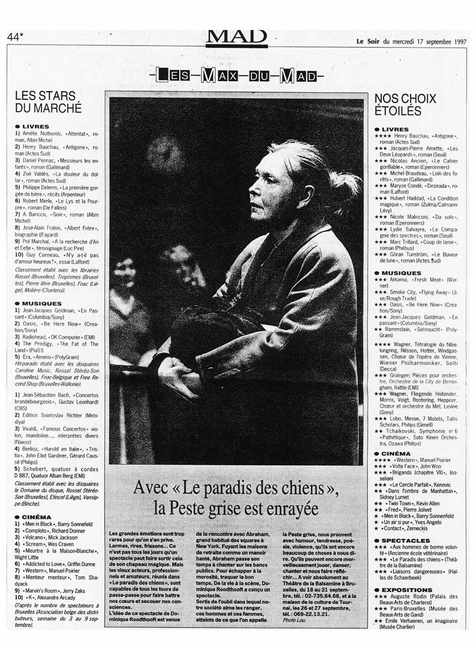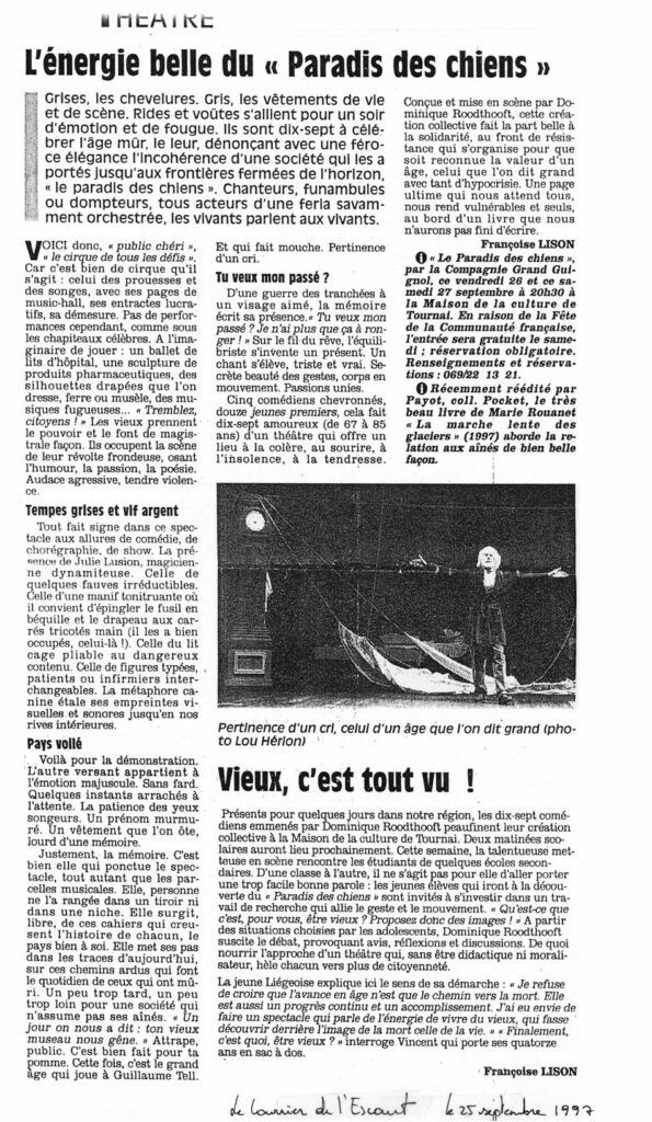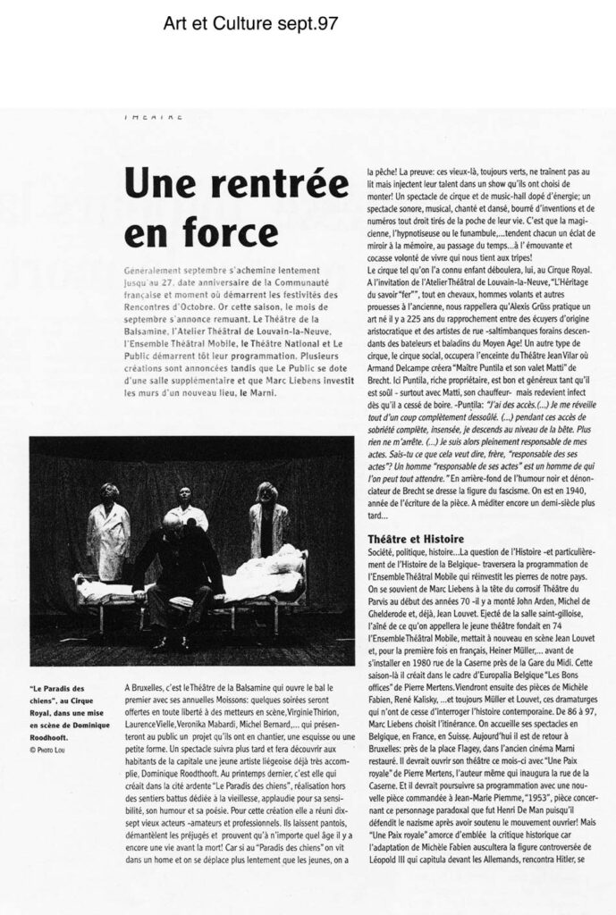 septembre 1997 : Théâtre de la Balsamine – Bruxelles / Maison de la Culture – Tournai