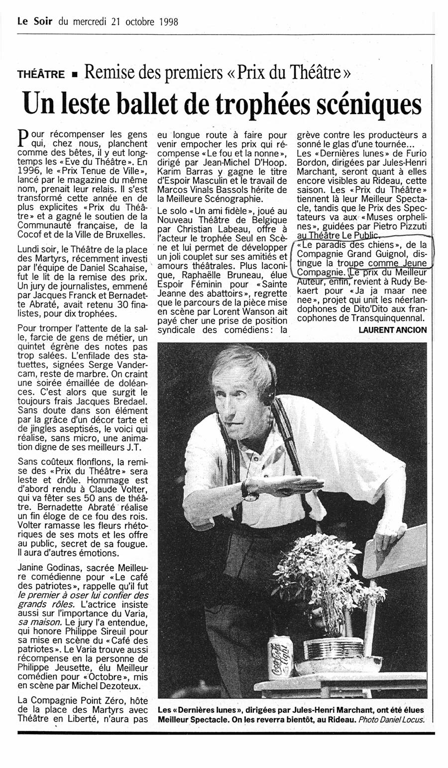 PRIX DU THEATRE : JEUNE COMPAGNIE, 1998