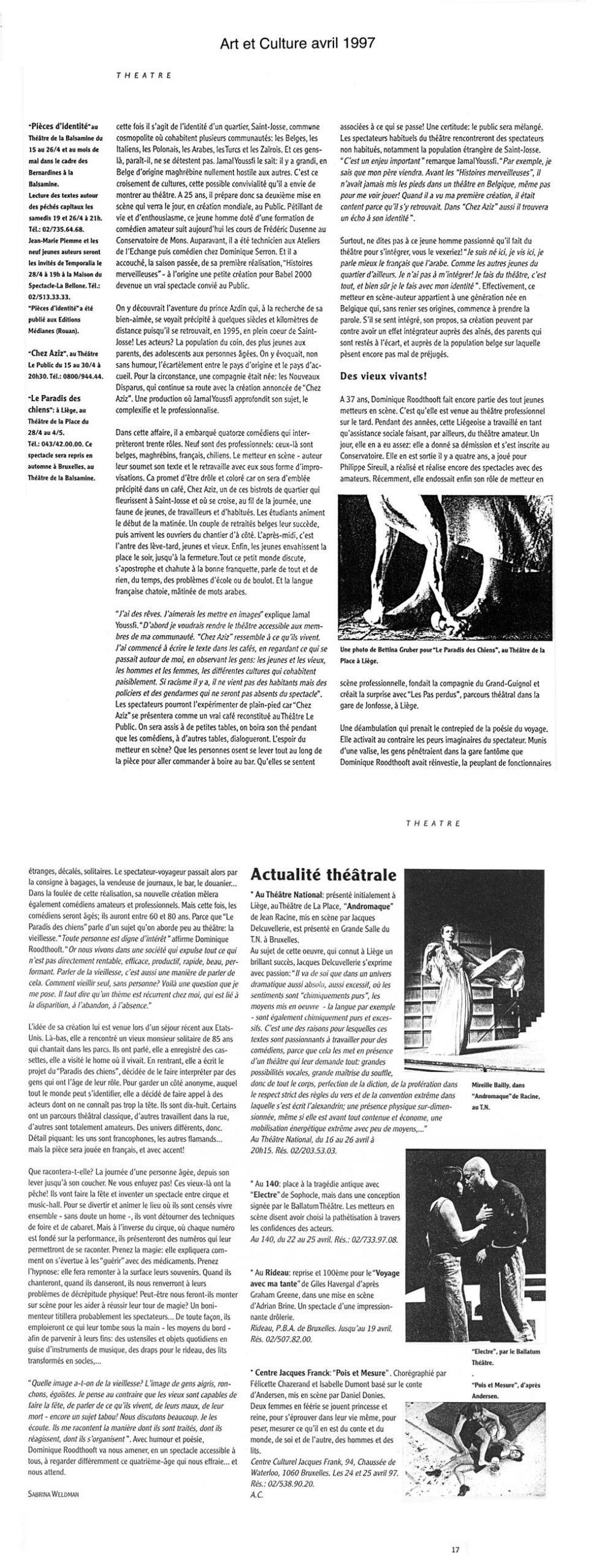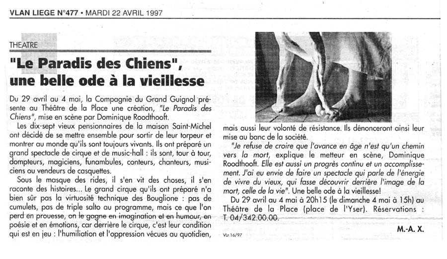 avril 1997 : Théâtre de la Place – Liège