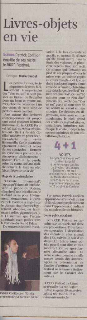 septembre 2015: RRRR festival du Théâtre Le Rideau – Bruxelles