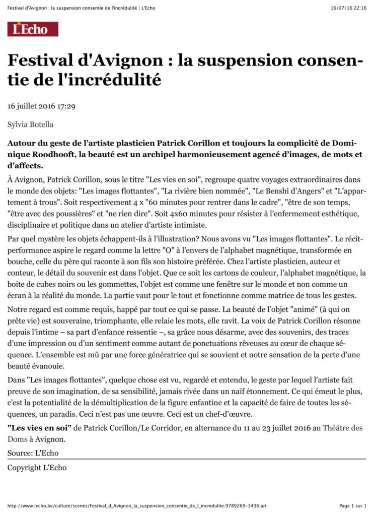 Ecriture, scénographie et jeu : Patrick Corillon