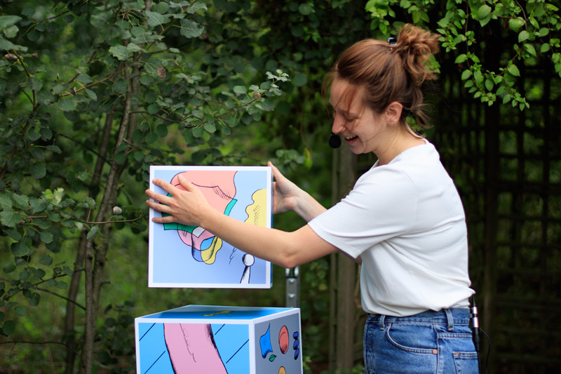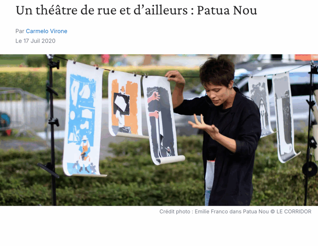L’ensemble (8 « patachitras ») est présenté hors les murs, dans l’espace public, soit dans la rue, soit à l’in – térieur d’un théâtre ou d’un autre bâtiment. Il peut s’inscrire dans la programmation mais, vu la gratuité, il reste accessible au passant.e ou promeneur.euse qui peut s’arrêter et rentrer en culture par accident.