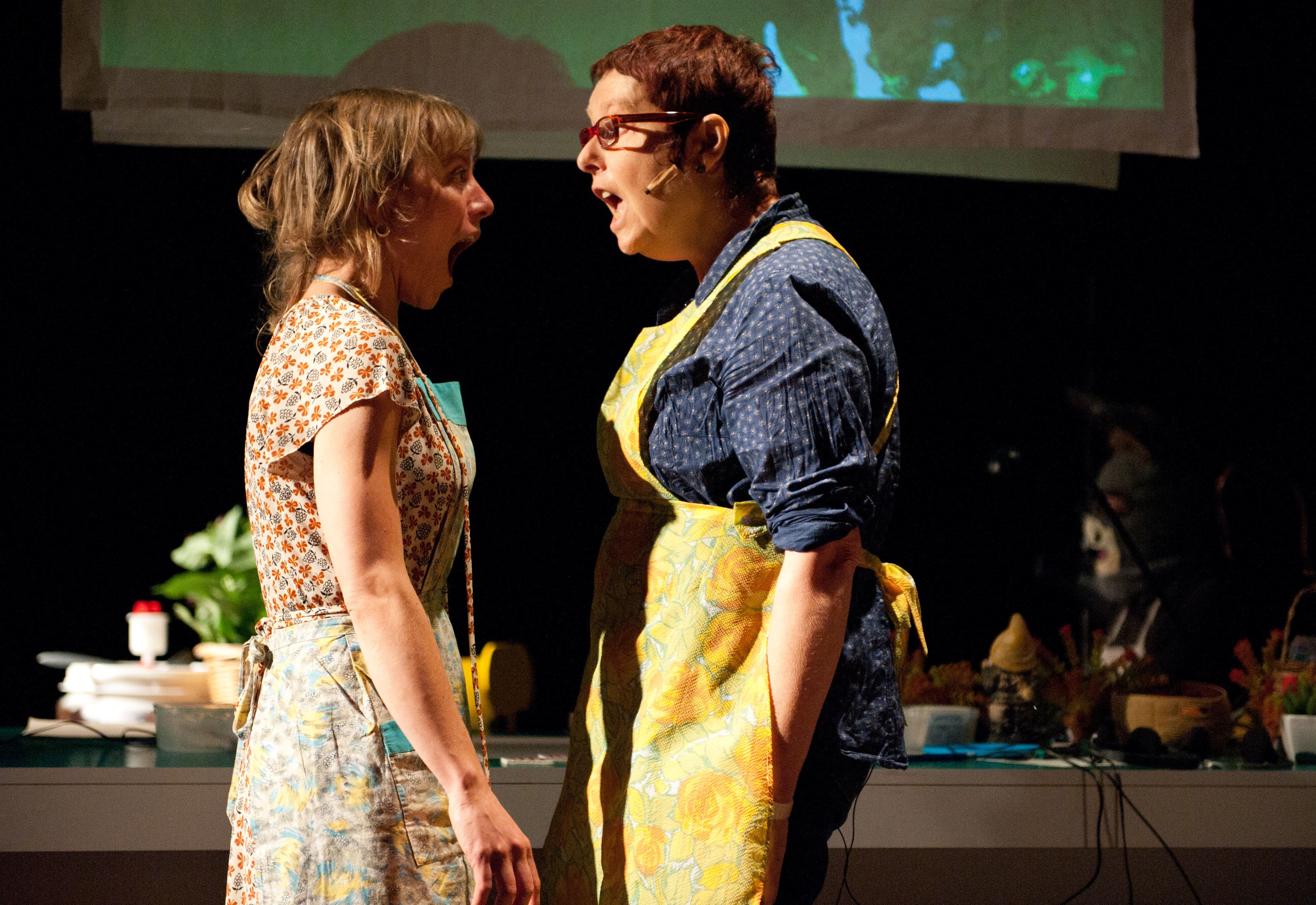 «Push up daisies (ou) manger les pissenlits par la racine ?» est le sous-titre de «Smatch[2]» qui cette fois, s’axe davantage sur la nature, le végétal, et où la conceptrice cherche à éviter le simplisme, à nous ouvrir à tous les aspects de la vie qui ignorent la vision binaire ou abstraite du monde. Pour ne pas se contenter d’une indignation impuissante devant les images terrifiantes de la destruction d’une forêt séculaire. La scène sera d’ailleurs figurée – et filmée en direct – par un champ de brocolis décimés au couteau électrique.
