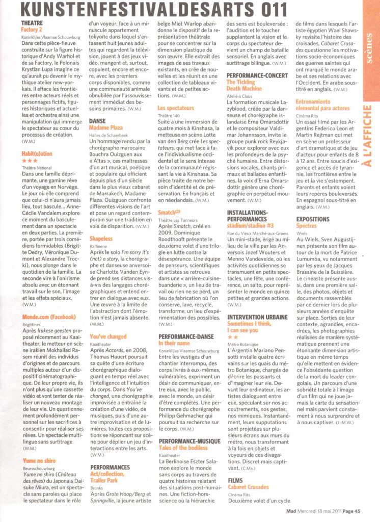 mai 2011: Kunstenfestivaldesarts – Bruxelles
