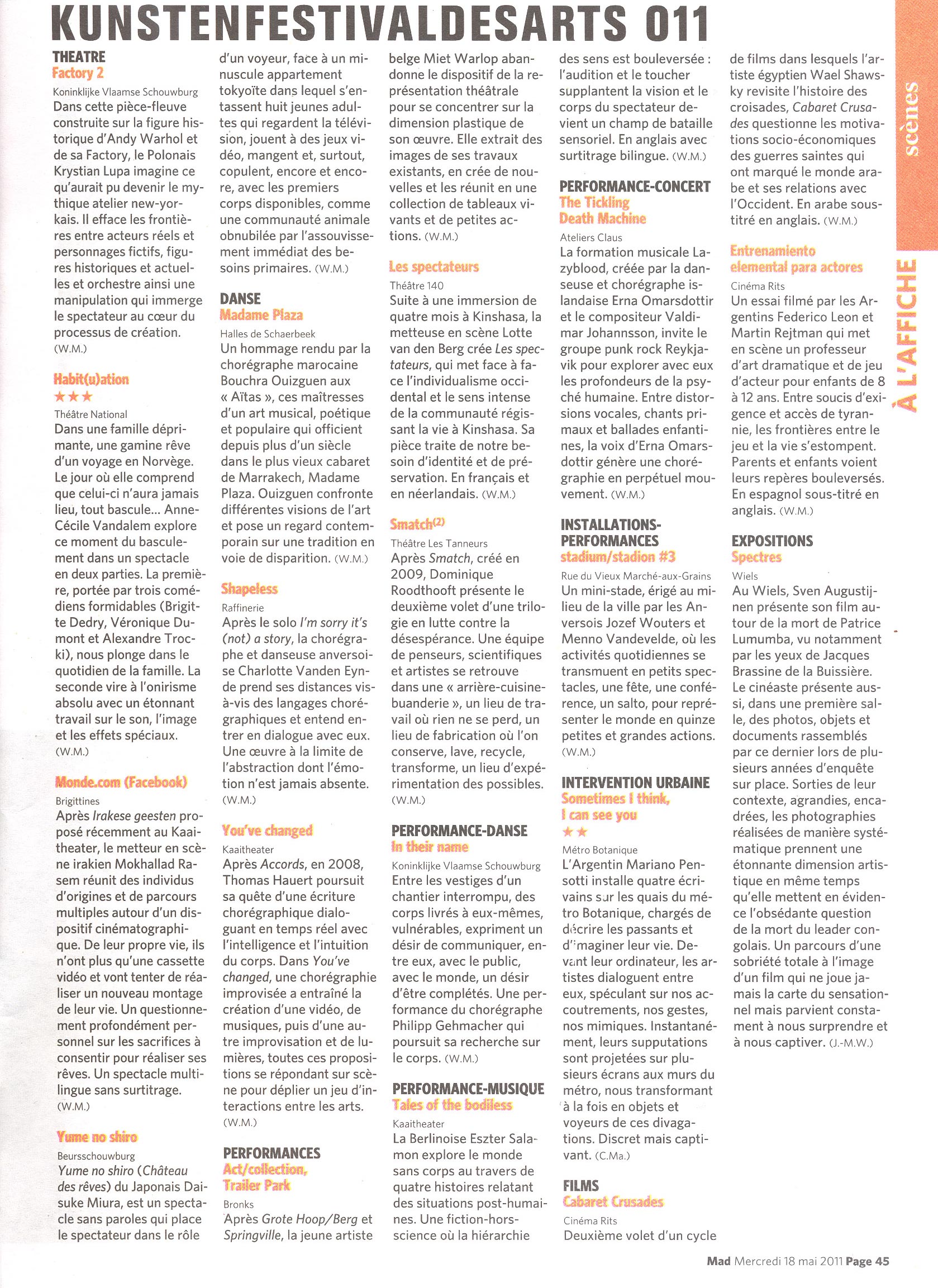 mai 2011: Kunstenfestivaldesarts – Bruxelles