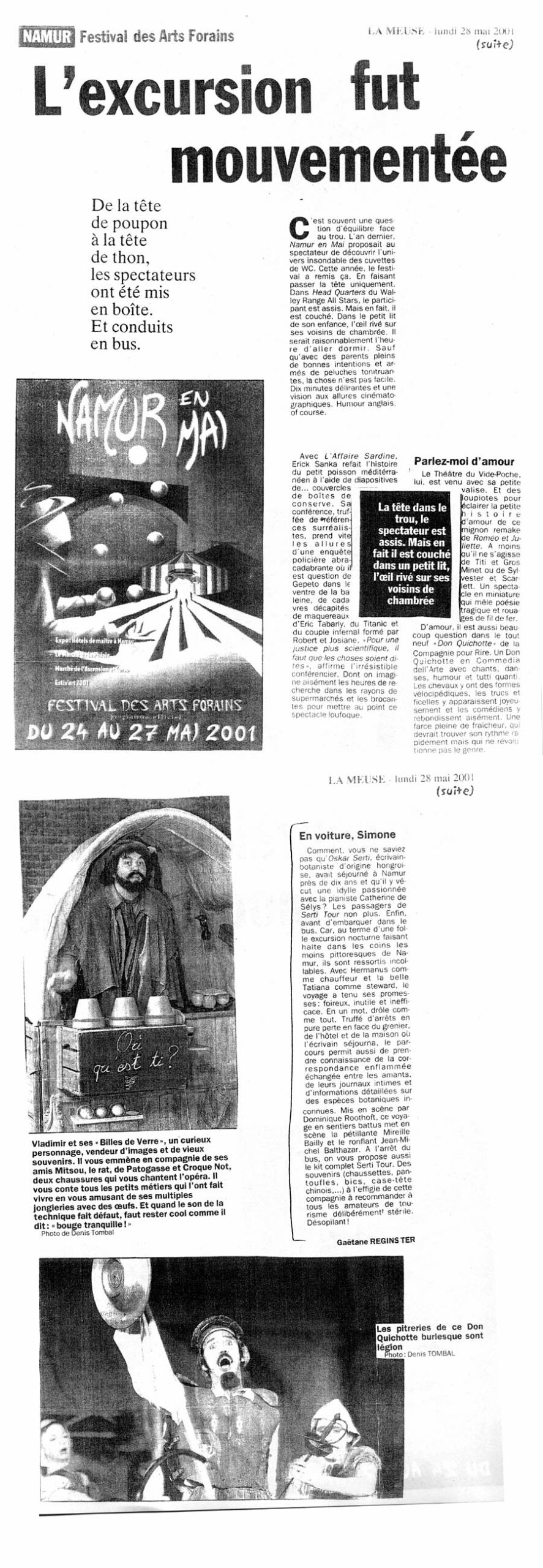 mai 2001 : La ferme du Buisson – Marne-La-Vallée, La Rose des Vents – Villeneuve d’Asq, la Maison de la Culture – Tournai, le Festival des Arts Forains – Namur